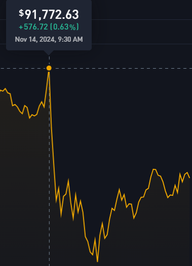 Bitcoin’s price took a notable dip near the close of trading on Wall Street, dropping to approximately $87,000. After opening the day at about $91,772, Bitcoin’s value fluctuated as the market reacted to a mixture of economic indicators and investor sentiment.