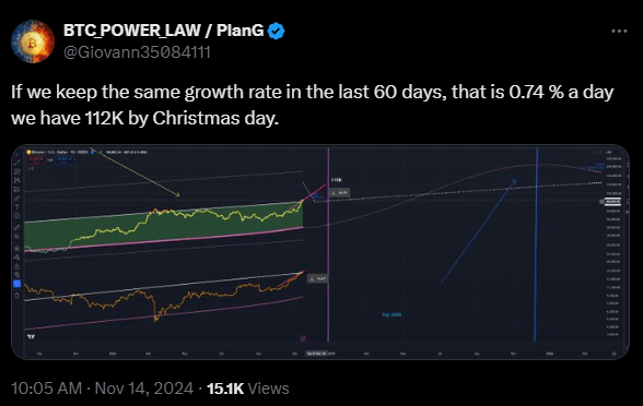 If this trend continues, projections indicate that Bitcoin could reach $112,000 by December 25, 2024.