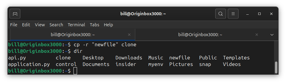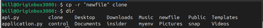 This command copies the newfile directory and all its contents into a new directory called clone. The -r flag ensures that all subdirectories and files inside newfile are copied as well.