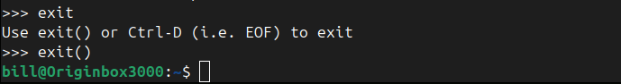 After your done using python in the terminal you can type the command “exit()” to exit the python application.