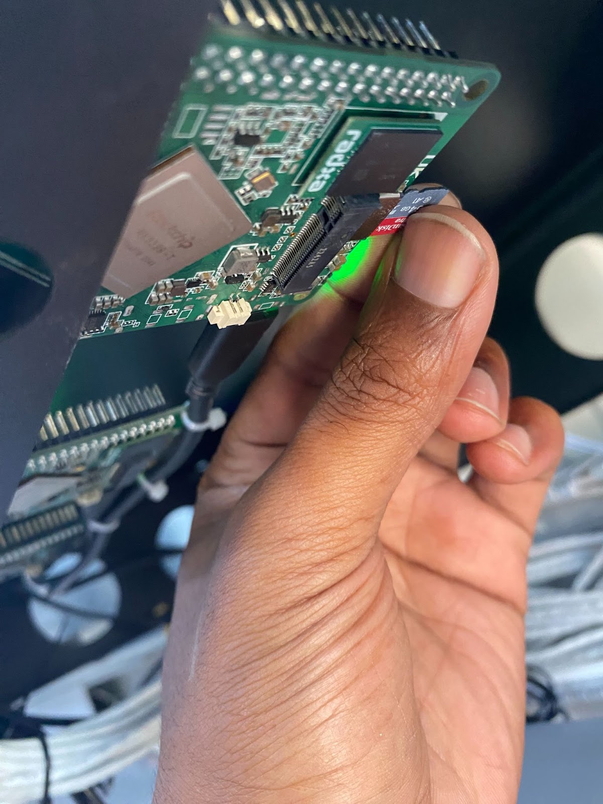 - There are 3 Rockpi’s per container. Place the sd card in the slot on the backside of the Rockpi 4-SE.