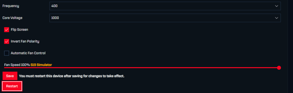 Afterward, you will have a new dashboard with new features on the left of the GUI. You can also set the ASIC chip “frequency” and “core voltage” back to it’s normal state. If you’re feeling lucky, you can overclock your machine as well.