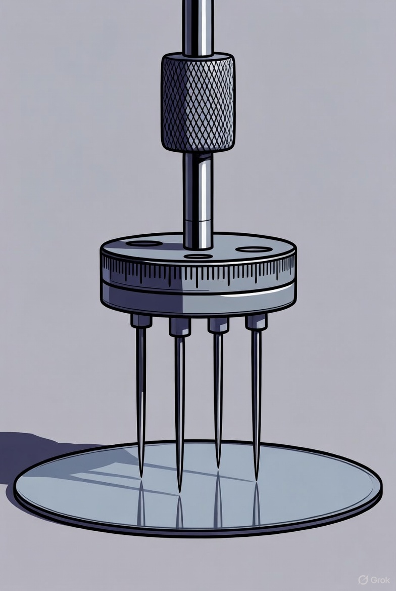 Unlike the simpler two-point probe method, the 4PP method effectively eliminates the error introduced by contact resistance—the unwanted resistance generated at the interface between the metal probe and the semiconductor surface.