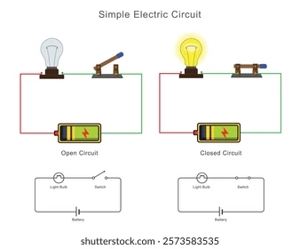 Simple circuits may also include a switch to open or close the loop, controlling whether current flows.