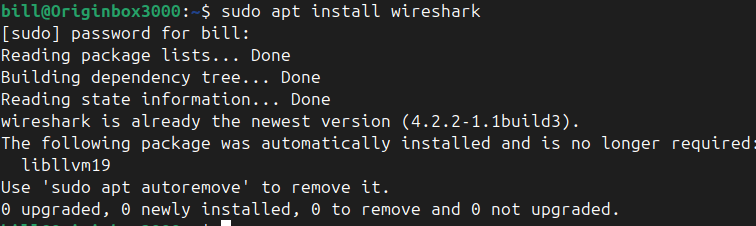 Installing Wireshark on Ubuntu is far easier through the terminal because Ubuntu already includes the correct Wireshark package in its official repositories.